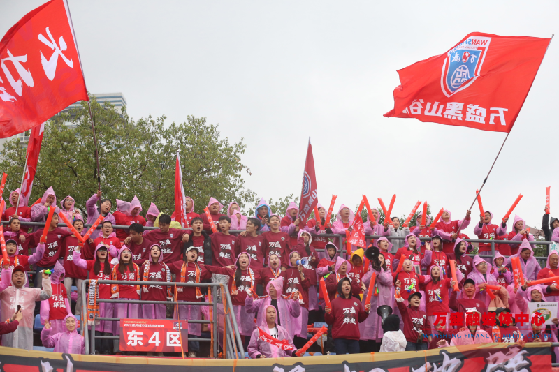 比赛开赛前半小时,万盛球迷手持各色横幅,自发环场一周,整齐划一的“万盛万盛,战无不胜”助威口号响彻赛场。